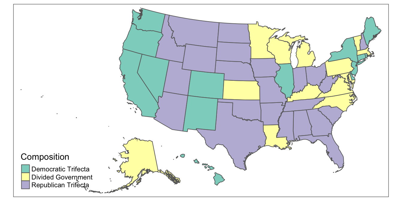 mutate(Composition=factor(Composition, levels=c("Democratic Trifecta", "Republican Trifecta", "Divided Government")))